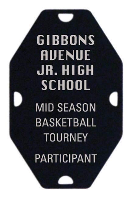 Description: Decorating is for illustration purposes only and is not included in the price. All medal backs can be engraved. Street Tags are aluminum and engrave silver. Except where noted back of Street Tags are all black in colour.